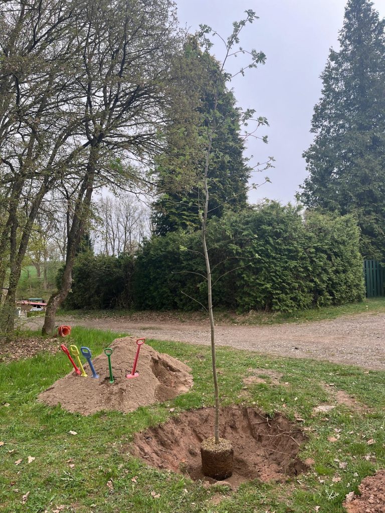 Der Baum wurde durch die Stadt Weiden gesponsert und von Thorsten Wolf organisiert. Mit Unterstützung der Betreuerinnen Luisa Miederer, Luisa Steinsdörfer, Regina Miederer übernahmen die Kinder die Pflanzung selbstständig und mit großem Engagement. Als neues Zuhause für den Baum wurde ein freies Plätzchen im „Park“ zwischen der Latscher- und Pfarräckerstraße in Neunkirchen gewählt. Eine große Hilfe bei der Organisation waren außerdem Jugendwart Jakob Grajer und der Kommandant Roman Baumgärtner.