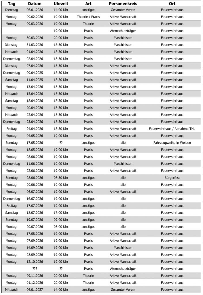 Übungsplan
